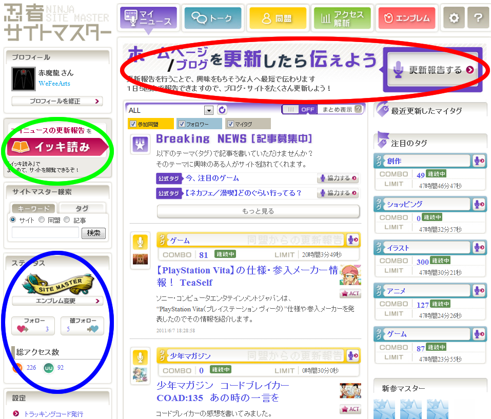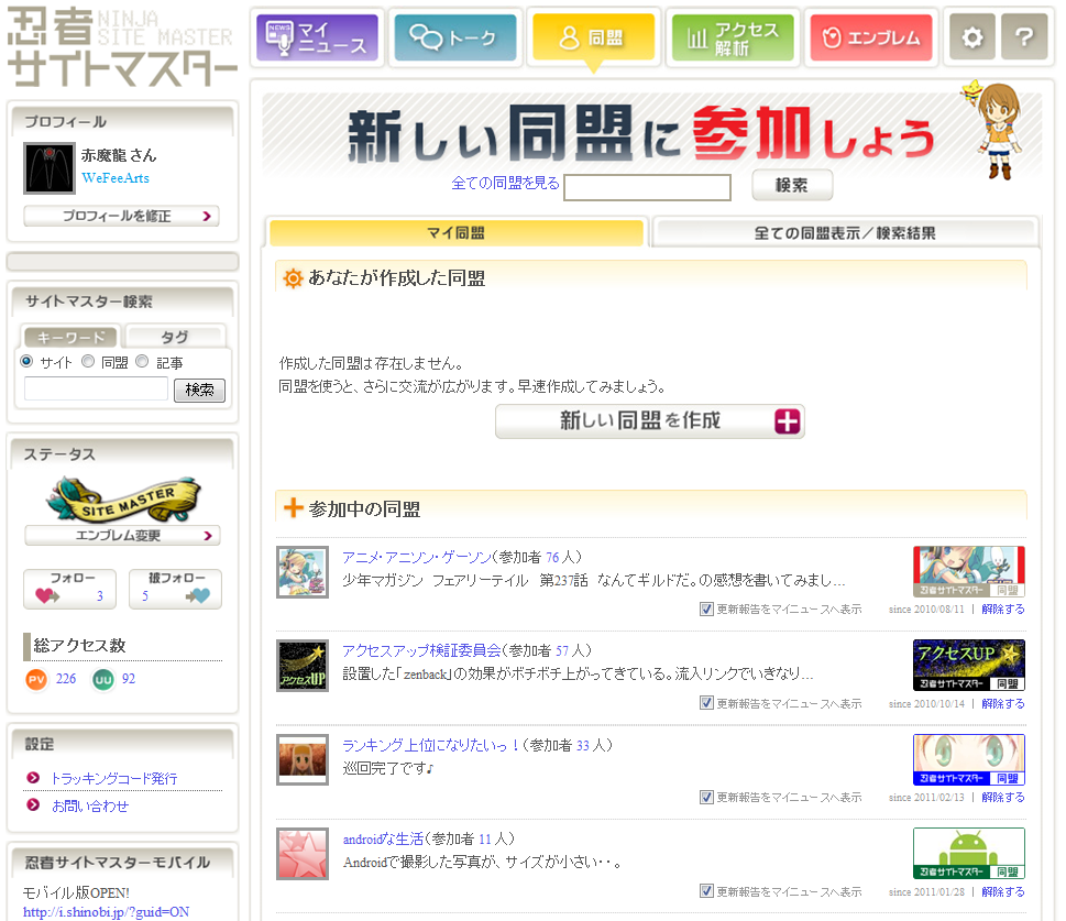 俺がよく使う機能はマイニュースと同盟とアクセス解析の3つ。
