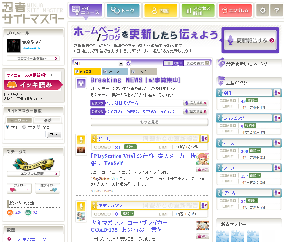 俺がよく使う機能はマイニュースと同盟とアクセス解析の3つ。